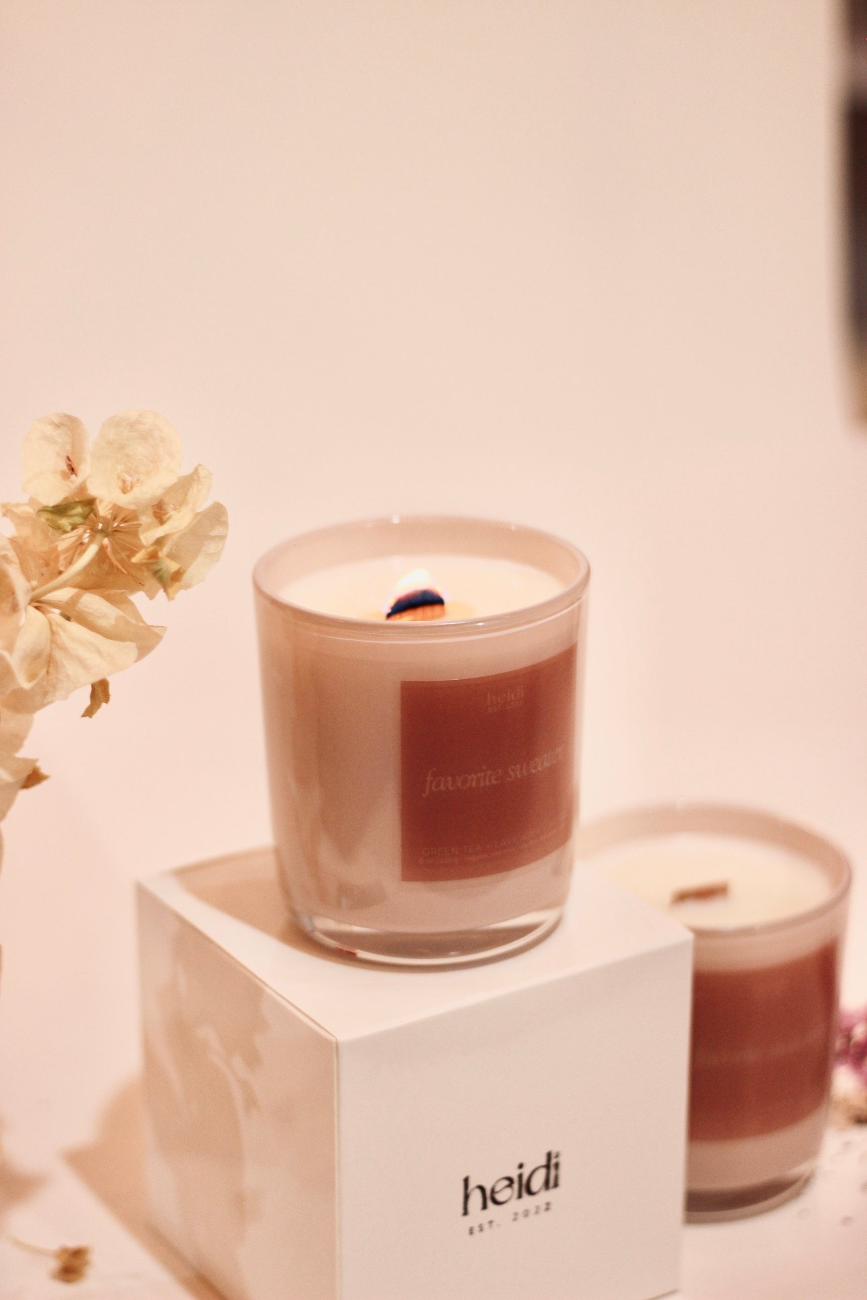 At Heidi Studio, we pour our passion for artistry and craftsmanship into every handmade candle piece we create. Our candles are 100% made of natural soy wax, premium natural fragrances, with wood wick.Â